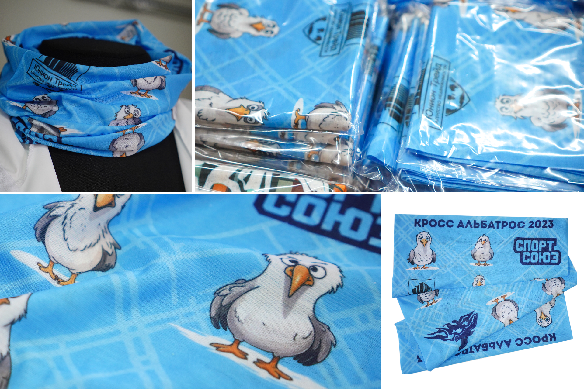 Печать и изготовление Баффа с мерчем для участников соревнований "Кросс Альбатрос"
